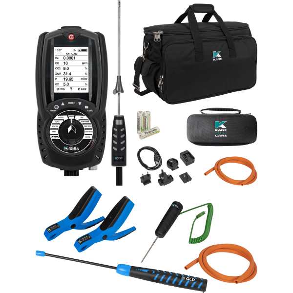 Supplied with Pressure hose, CP2 combustion probe, plus KANE-IRP3 infra-red printer, GLD/450plus leak detector, KAL1
