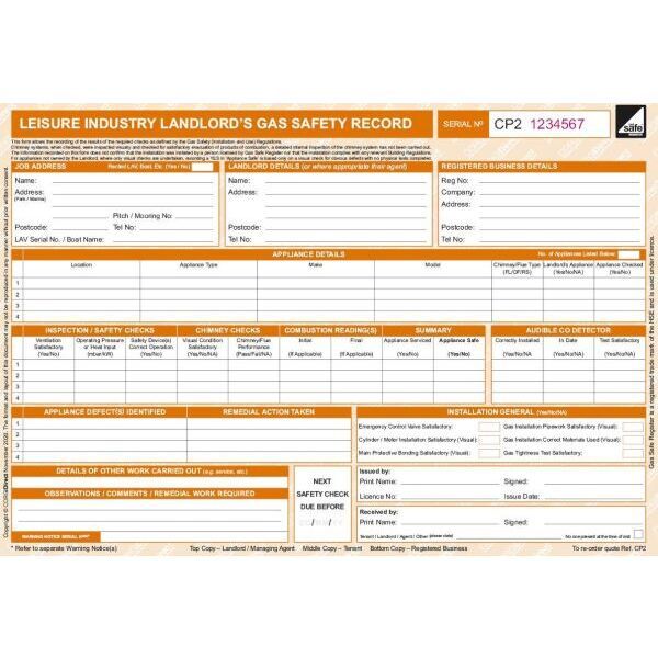 This form allows you to record all the necessary information in accordance with the Gas Safety (Installation and Use) Regulations. Each form is printed with a unique serial number.